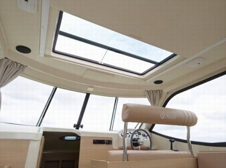 Nicols Primo (Nicols) tilhører kategorien Sedan, som er kendetegnende ved, at de har et stort opholdsrum med panoramavinduer og en rummelig terrasse bagerst i båden.